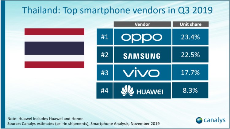 OPPO ผู้นำด้านสมาร์ทโฟน ก้าวเข้าสู่อันดับ 1 ของ ตลาดสมาร์ทโฟนไทยไตรมาสที่ 3 ปี 2562 (จากจำนวนเครื่อง, อ้างอิงจาก: Canalys, พฤศจิกายน 2562) ได้อีกครั้งหลังจากมีการปรับเปลี่ยนกลยุทธ์ทางการตลาดตั้งแต่ปี 2561 ซึ่งสิ่งที่ทำให้ OPPO นั้นสามารถขึ้นครองอันดับ 1 ได้มีดังนี