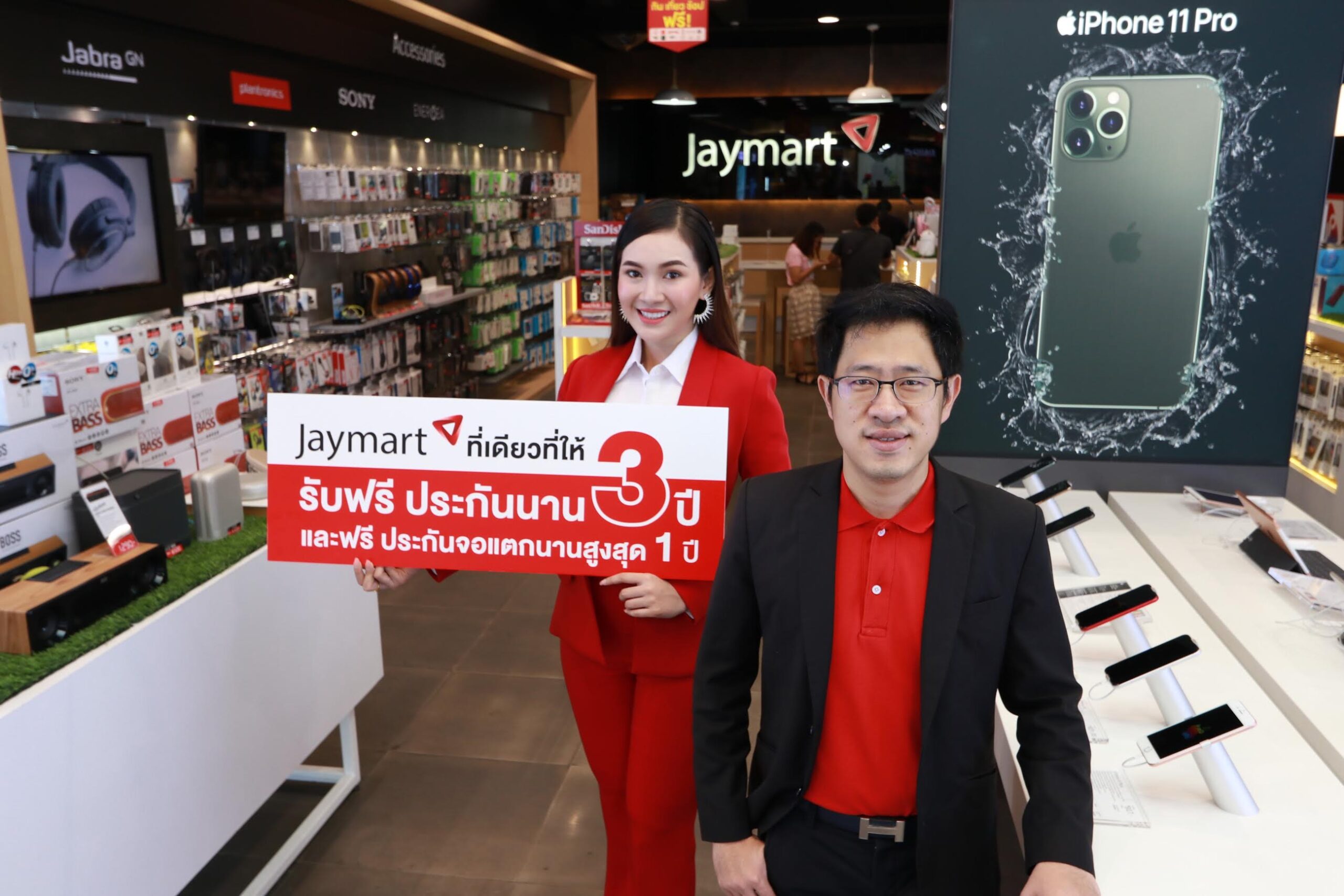 นายนราธิป วิรุฬห์ชาตะพันธ์ ประธานเจ้าหน้าที่บริหาร บริษัท เจ มาร์ท โมบาย จำกัด (JAYMART MOBILE) ผู้ประกอบธุรกิจค้าปลีกสมาร์ทโฟนรายใหญ่ของประเทศ มอบความคุ้มค่าที่ไม่ควรพลาด ตอบแทนลูกค้าส่งท้ายปี ให้กับสาวก iPhone รับฟรี ประกันนาน 3 ปี และฟรี ประกันจอแตกนานสูงสุด 1 ปี เมื่อซื้อ iPhone ทุกรุ่น ที่เจมาร์ท และสมัครแพ็คเกจ AIS หรือซื้อเครื่องเปล่าราคาพิเศษ ไม่ต้องจ่ายล่วงหน้า สำหรับลูกค้าเอไอเอส รายเดือน ที่มีอายุการใช้งาน 12 เดือนขึ้นไป พร้อมรับส่วนลดค่าเครื่องสูงสุด 7,700 บาท และผ่อนสบาย 0% นานสูงสุด 40 เดือน เฉพาะรุ่นและบัตรเครดิตที่ร่วมรายการ