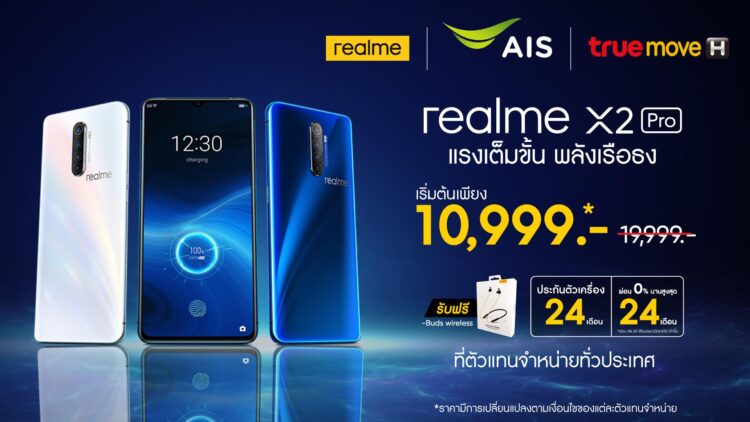 realme แบรนด์สมาร์ทโฟนเพื่อคนรุ่นใหม่ หลังจากเปิดตัวสมาร์ทโฟนพลังเรือธงอย่าง realme X2 Pro มาส่งท้ายปีสร้างสีสันให้กับวงการสมาร์ทโฟน ล่าสุดวางจำหน่าย realme X2 Pro อย่างเป็นทางการแล้ว พร้อมกับราคาสุดพิเศษ เริ่มต้นที่ 10,999 บาท จากราคาปกติ 19,999 บาท เท่านั้นไม่พอ ยังมาพร้อมกับของแถมสุดพิเศษ realme Buds wireless หูฟังพลังเสียงแน่น มูลค่า 1,999 บาท พิเศษสำหรับลูกค้าที่ซื้อ realme X2 Pro ตั้งแต่วันนี้ – 31 ธันวาคม รับประกันตัวเครื่องนานถึง 24 เดือน และสามารถผ่อน 0 % นานสูงสุด 24 เดือน