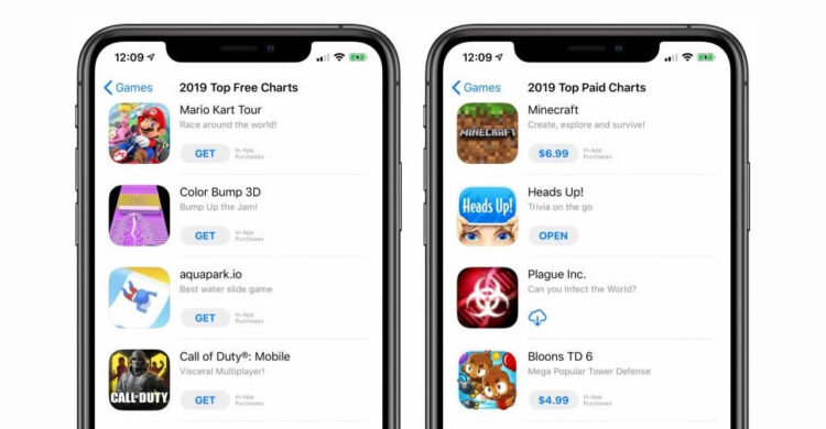 หลังจากมีการประกาศ รายชื่อแอพและเกมที่ดีที่สุดแห่งปี 2019 ไปก่อนหน้านี้ Apple ยังได้อัพเดท App Store โดยนำเสนอการจัดอันดับแอพและเกมที่ถูกดาวน์โหลดมากที่สุดในปีนี้ โดยแบ่งเป็นหมวดหมู่เกมและแอพที่มีทั้งเสียเงินและฟรี รวมถึงแบ่งหมวดหมู่ตามอุปกรณ์ iPad และ iPhone ตามรายการด้านล่าง