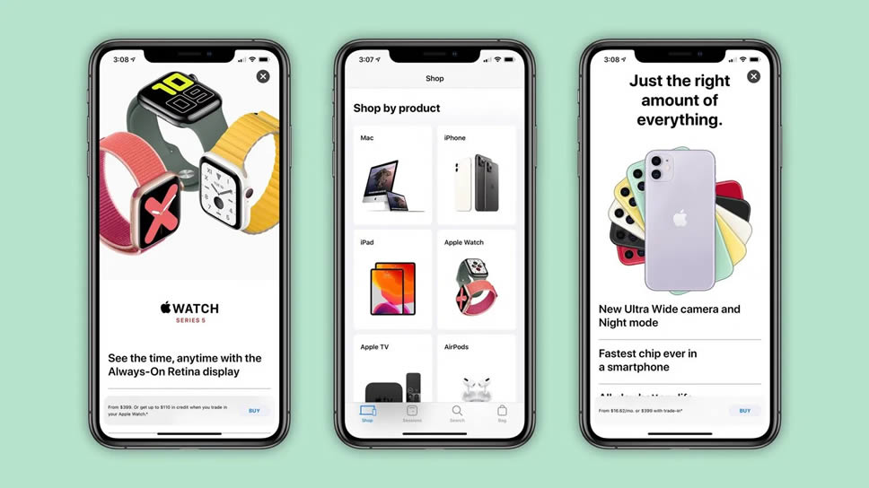 แอพพลิเคชั่น Apple Store ได้รับการออกแบบใหม่ เพื่อยกระดับประสบการณ์การช้อปปิ้งออนไลน์ให้สมบูรณ์แบบมากขึ้น ด้วยการนำเสนอรูปภาพของผลิตภัณฑ์ที่ดูดีขึ้น พร้อมด้วยคำแนะนำเกี่ยวกับสินค้า และปรับปรุง User Interface ใหม่