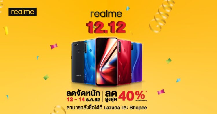 realme มอบความสุขส่งท้ายปี กับโปรโมชั่นพิเศษ 12.12 ส่วนลดสูงสุดกว่า 40% พร้อมรับเงินคืนกว่า 2,000 บาท!!