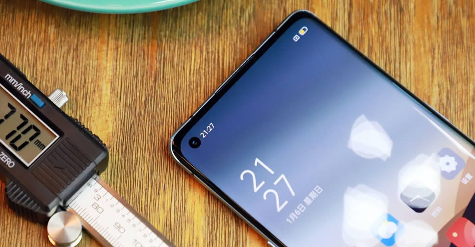 แหล่งข่าวในประเทศจีน แชร์รูปภาพสมาร์ทโฟน OPPO Reno3 Pro 5G เครื่องจริง พร้อมวัดความบางเปรียบเทียบกับสมาร์ทโฟนรุ่นต่างๆ ซึ่ง Reno3 Pro 5G มีความบางเพียง 7.7 มิลลิเมตร ตามที่ OPPO เคยประกาศไว้