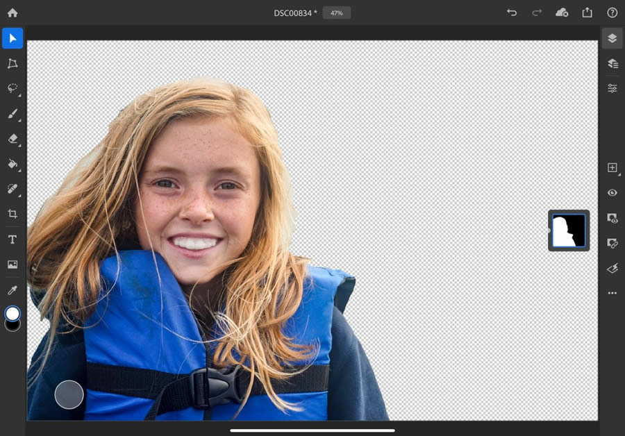 ฟีเจอร์ Select Subject สำหรับแอพ Photoshop on iPad ช่วยให้ผู้ใช้งานเลือกวัตถุหรือส่วนที่ต้องการบนรูปภาพได้อย่างแม่นยำ และให้ผลลัพธ์ที่ดีเหมือนกับเวอร์ชั่น Desktop โดยใช้เทคโนโลยี Machine Learning ของ Adobe Sensei