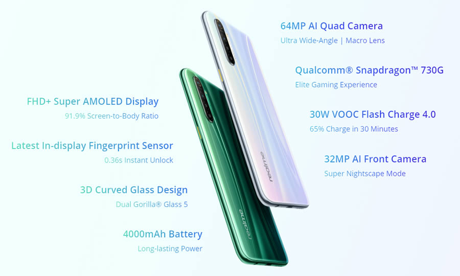 realme X2 ใช้ชิปประมวลผล Qualcomm Snapdragon 730G ความจำ RAM 4GB, 6GB, 8GB จับคู่กับ ROM 64GB, 128GB รองรับการ์ด microSD สูงสุด 256GB ความจุแบตเตอรี่ 4000mAh รองรับชาร์จเร็ว 30W VOOC Flash Charge 4.0 ผ่านพอร์ต USB Type-C