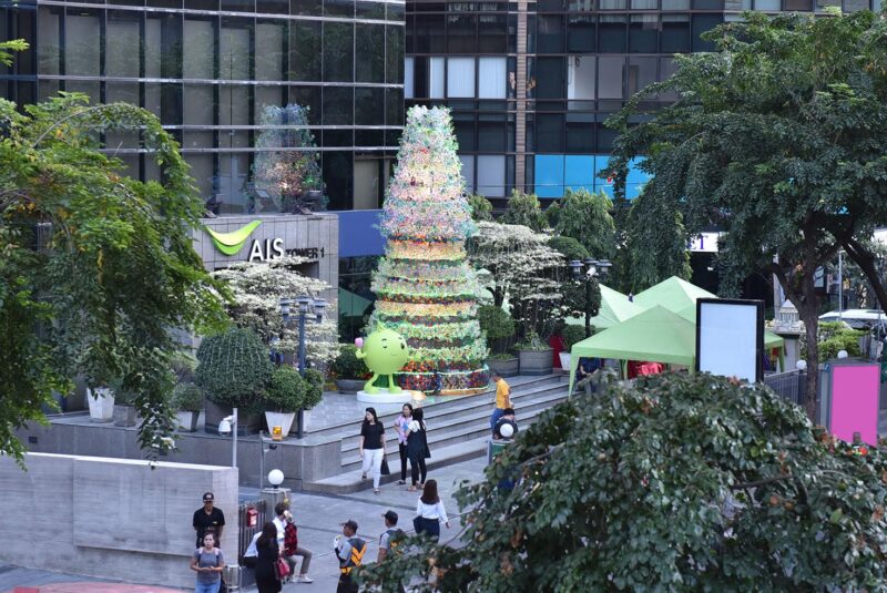 เอไอเอสสุดครีเอท ชวนคนไทยร่วมส่งท้ายปีเก่าต้อนรับปีใหม่ 2020 ร่วมเป็นส่วนหนึ่งที่ช่วยกันสร้างโลกให้น่าอยู่ยิ่งขึ้น ด้วยการรณรงค์คัดแยกและทิ้งขยะอิเล็กทรอนิกส์ (E-Waste) เพื่อนำไปสู่การกำจัดอย่างถูกวิธี เป็นมิตรต่อสิ่งแวดล้อม โดยถ่ายทอดคุณค่าของความยั่งยืน ผ่านการสร้างสรรค์ “ต้นคริสต์มาสรักษ์โลก” ครั้งแรกในไทยที่ทำจากขยะอิเล็กทรอนิกส์ และขวดพลาสติกที่คนนำมาทิ้ง ประดับไฟนีออนหลากสีสวยงาม ตั้งอยู่บริเวณหน้าสำนักงานใหญ่ อาคารเอไอเอส 1 ถนนพหลโยธินและ AIS D.C. ชั้น 5 ศูนย์การค้า ดิ เอ็มโพเรียม
