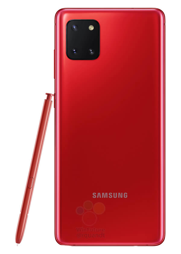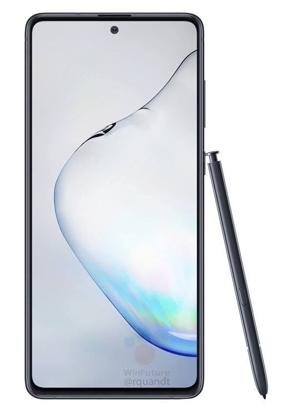 ภาพเรนเดอร์ทางการของสมาร์ทโฟน Samsung Galaxy Note 10 Lite รั่วไหลออกมาแล้ว จากเว็บไซต์ WinFuture ซึ่งเป็นแหล่งข่าวที่เชื่อถือได้ เผยให้เห็นดีไซน์ของ Galaxy Note 10 Lite ที่แตกต่างไปจาก Galaxy Note 10 แต่ยังมาพร้อมปากกา S Pen อันเป็นเอกลักษณ์ของ Galaxy Note Series