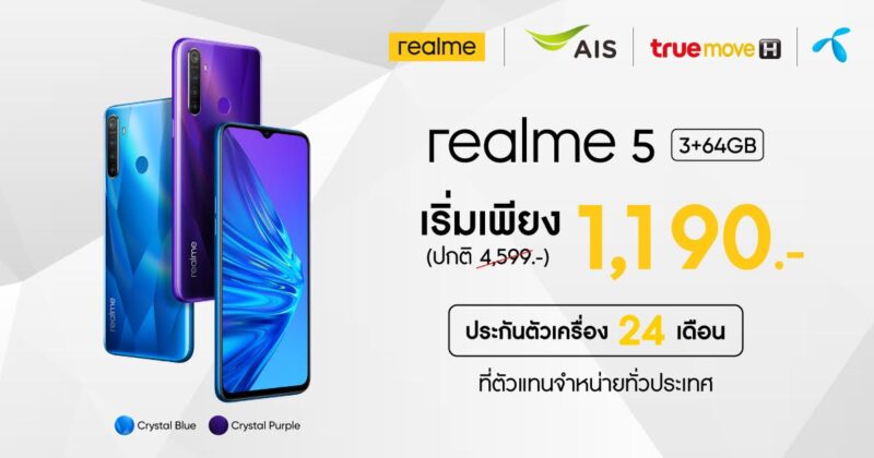 · ลูกค้า TrueMove H เป็นเจ้าของ realme 5 ในราคาเริ่มต้นที่ 1,190 บาท