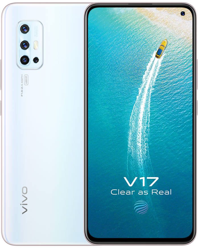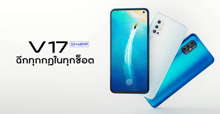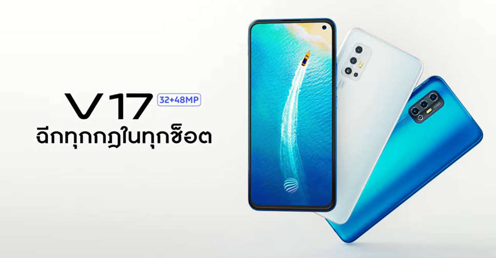 Vivo ประกาศราคาสมาร์ทโฟน Vivo V17 ในประเทศไทยแล้ว 11,999 บาท มีให้เลือก 2 สี ได้แก่ Crystal White และ Admiral Blue ชูจุดเด่นที่จอแสดงผล Super AMOLED Ultra O Screen ใช้ชิปประมวลผล Qualcomm Snapdragon 675 ความจำ RAM 8GB จับคู่กับ ROM 256GB ความจุแบตเตอรี่ 4500mAh