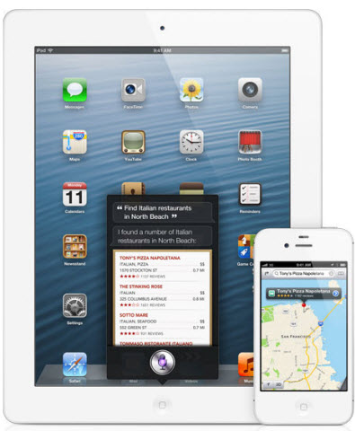 Siri : แผนที่บน iOS 6 มีการพ่วงระบบเข้าไปใช้งานกับ Siri ตัวอย่างเช่นสั่งงานให้ Siri ค้นหาร้านอาหารที่ใกล้เส้นทางที่เราอยู่ในปัจจุบัน จากนั้นให้ Siri นำทางและเลือกเส้นทางที่เร็วที่สุดเพื่อไปถึงจุดหมายถึงดังกล่าวได้