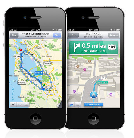เป็นไปตามที่มีข่าวลือกันมาก่อนหน้านี้ว่าเราจะได้เห็นความเปลี่ยนแปลงของแผนที่บน iOS 6 ซึ่งระบบของแผนที่บน iOS 6 นี้ค่อนข้างมีการเปลี่ยนแปลงให้เห็นอย่างชัดเจน รวมถึงยังมีการเพิ่มฟังก์ชันการใช้งานต่างๆที่น่าสนใจและทำให้ใช้งานได้ดีขึ้นเข้าไปเพิ่มเติมอีกด้วย
