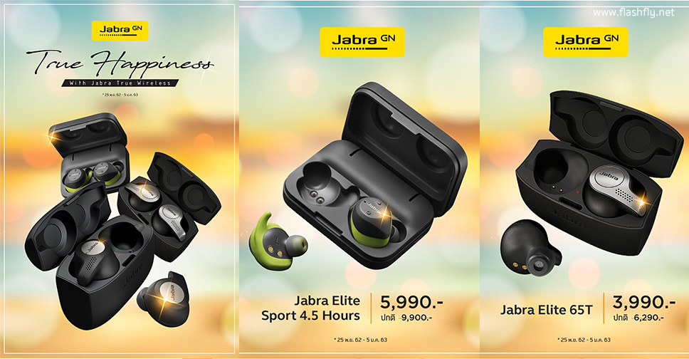 บริษัท อาร์ทีบี เทคโนโลยี จำกัด ผู้นำเข้าและจัดจำหน่ายนวัตกรรมหูฟังคุณภาพสุดล้ำของประเทศไทย ลุยจัดแคมเปญสุดพิเศษส่งท้ายปี ฉลองความสำเร็จยอดขายจาบร้า (Jabra) แบรนด์หูฟังจากประเทศเดนมาร์กที่มีชื่อเสียงเป็นที่ยอมรับของทั่วโลกที่มีการเติบโตอย่างงดงาม กับโปรโมชั่น “True Happiness with Jabra True Wireless” เพื่อเป็นการขอบคุณคอเพลงชาวไทย ได้ดื่มด่ำกับการฟังเสียงดนตรีสุดล้ำในราคาพิเศษสุด ด้วยการมอบส่วนลดพิเศษสูงสุดถึง 4,000 บาท สำหรับหูฟังจาบร้า 3 รุ่น ดังนี้