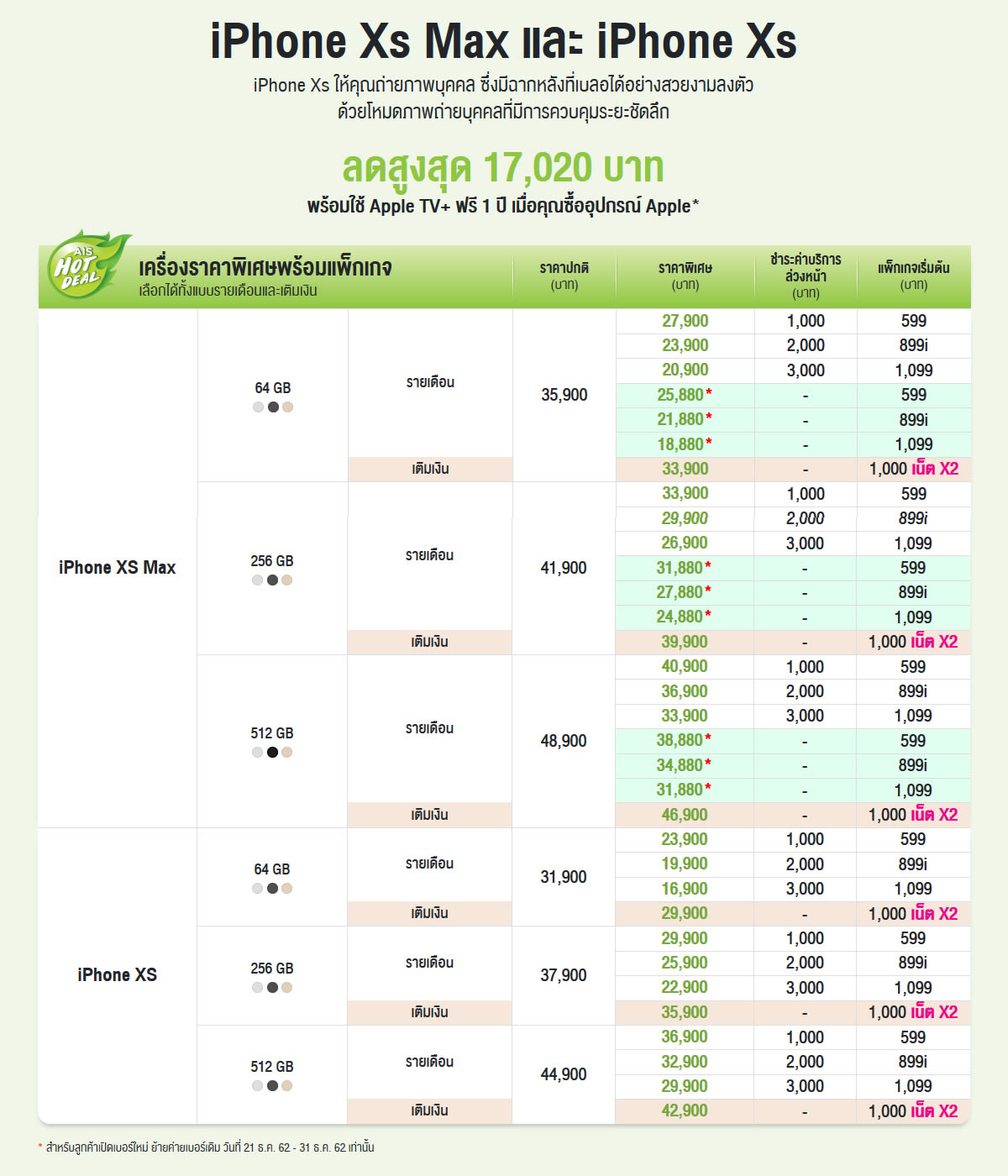 AIS มอบข้อเสนอสุดพิเศษส่งท้ายปี สำหรับ iPhone XS และ XS Max ลดสูงสุด 17,020 บาท หมดเขต 31 ธันวาคม 62