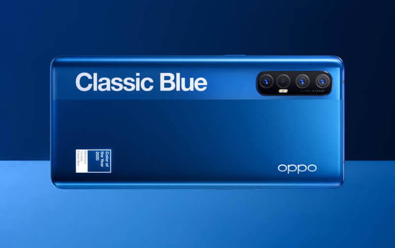 OPPO Reno3 Pro ผลิตออกมา 5 สี ซึ่งรวมสี Classic Blue จากรุ่นพิเศษ Pantone 2020 ซึ่งภายในกล่องจะมาพร้อมอุปกรณ์เสริมที่เป็นสีน้ำเงินตัดกับสีขาว โดยสีน้ำเงิน Classic Blue จะเป็นเป็นสีแห่งปี 2020 จากการกำหนดเทรนด์ของ Pantone