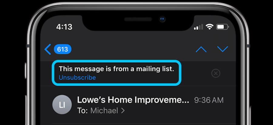 เริ่มจากยกเลิกการสมัครรับข่าวสาร โดยเข้าไปแตะปุ่ม Unsubscribe ในแอพ Mail กับอีเมลที่เห็นว่าไม่จำเป็นต้องรับทราบข้อมูล ซึ่งใน iPhone รุ่นเก่าอาจต้องใช้วิธีปัดนิ้วขึ้นจากด้านล่าง เพื่อเข้าถึงฟีเจอร์ Unsubscribe หรืออีกวิธีคือส่งอีเมลที่ไม่ต้องการไปยังโฟลเดอร์ขยะ