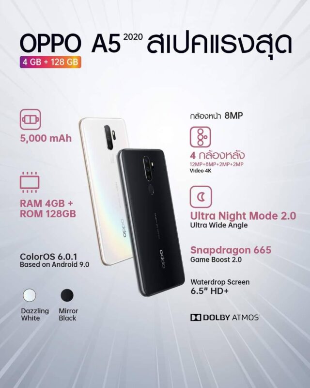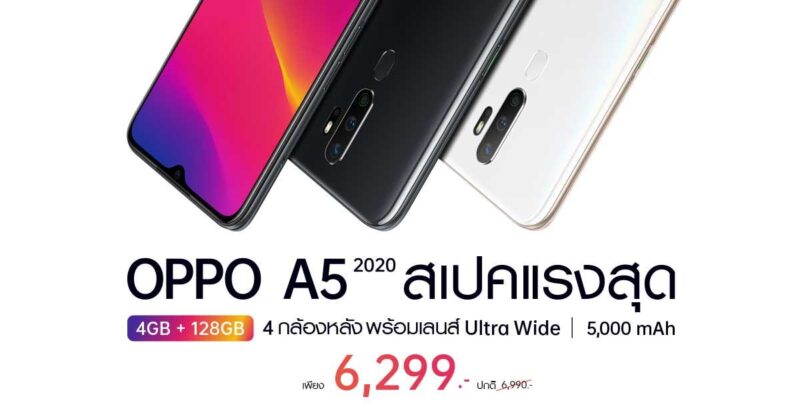 และข้อมูลเพิ่มเติมของ OPPO A5 2020 4GB ที่ https://www.oppo.com/th/smartphone-a5-2020/