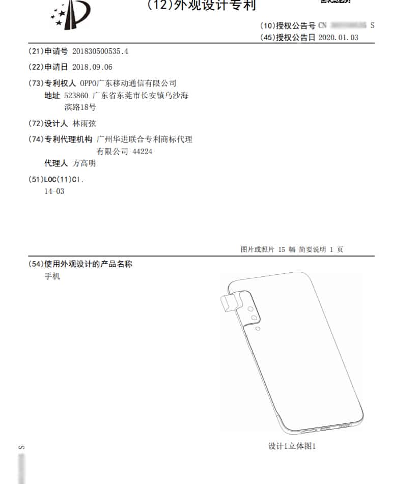 OPPO ถูกพบว่ากำลังพัฒนาสมาร์ทโฟน ที่วางกล้องป๊อปอัพไว้ตรงขอบด้านข้าง เหนือปุ่มเพาเวอร์ อ้างอิงจากการจดสิทธิบัตรกับทางสำนักงานทรัพย์สินทางปัญญาของประเทศจีน