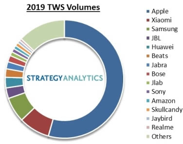 Ken Hyers ผู้อำนวยการของ Strategy Analytics กล่าวว่าตลาดหูฟังไร้สายแบบ TWS กำลังเปิดกว้าง เนื่องจากราคาชิปเซ็ทถูกลงกว่าครึ่งในช่วง 6 เดือนที่ผ่านมา จึงเป็นการเปิดประตูต้อนรับผู้ผลิตรายใหม่นับสิบราย ที่หันมานำเสนอหูฟัง TWS และด้วยราคาที่ถูกลง ทำให้ผู้บริโภคที่ไม่สามารถซื้อหูฟังระดับเพรีเมี่ยมจากแบรนด์ Apple, Bose, Samsung มีทางเลือกอื่นในราคาไม่แพง