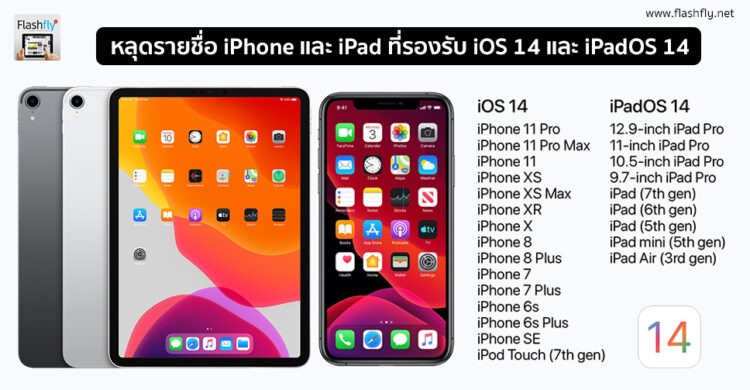 มาแล้วข้อมูลล่าสุดของ iOS 14 และ iPadOS 14 จากเว็บไซต์ iPhonesoft ในประเทศฝรั่งเศส ที่ได้ออกมาเปิดเผยรายชื่ออุปกรณ์ทั้ง iPhone ,iPad และ iPod Touch ที่รองรับหารใช้งาน iOS และ iPadOS เวอร์ชั่นใหม่ล่าสุดที่คาดว่าจะเปิดตัวช่วงกลางปีนี้ที่งาน WWDC2020 ซึ่งอุปกรณ์ส่วนใหญ่ที่รองรับ iOS13 จะสามารถใช้งาน iOS14 ได้ทั้งหมดมีรายละเอียดดังต่อไปนี้