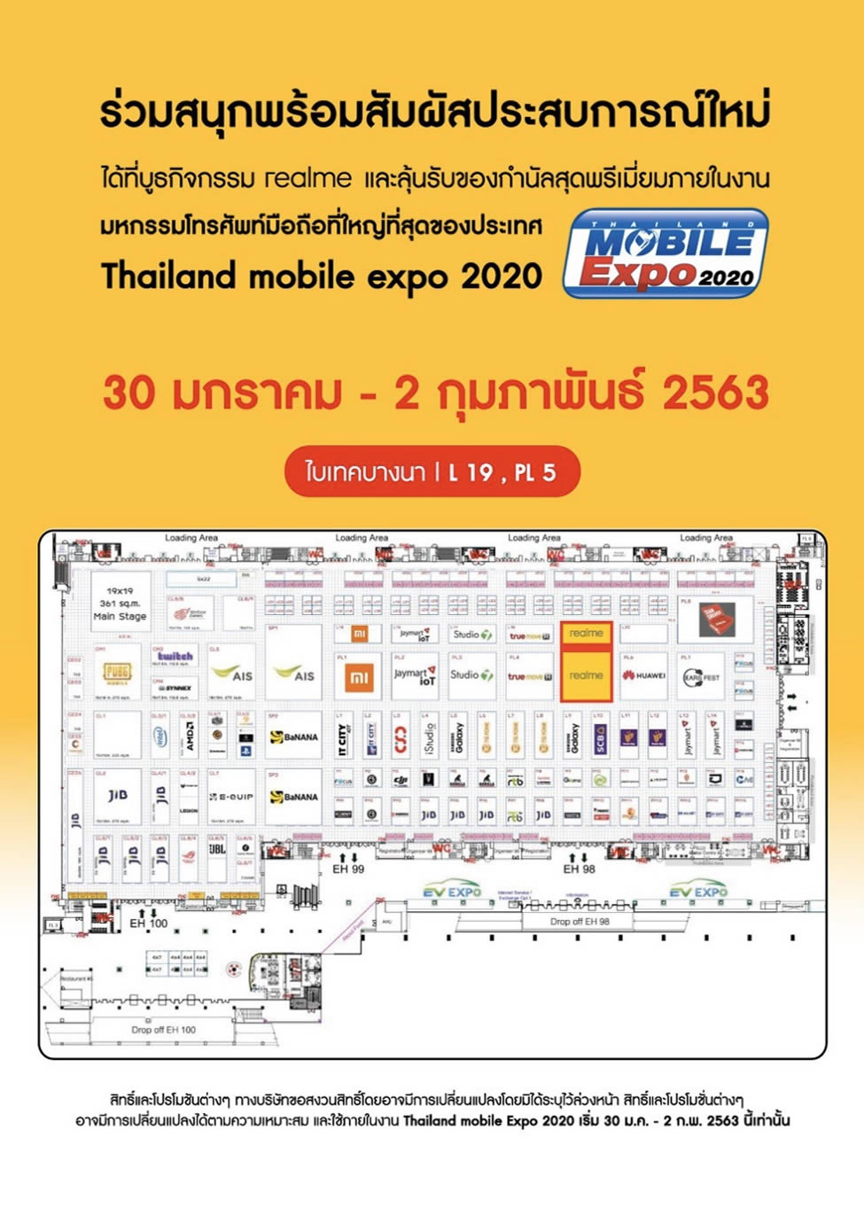 realme เตรียมกองทัพสมาร์ทโฟนและอุปกรณ์เสริมร่วมงาน Thailand Mobile Expo 2020 ที่กำลังจะเปิดฉากขึ้นในวันที่ 30 มกราคมนี้ พร้อมโปรโมชั่นสุดคุ้ม และของแถมอีกหลายรายการ เมื่อซื้อผลิตภัณฑ์จาก realme ภายในงานดังกล่าว ซึ่งจะได้พบกับสมาร์ทโฟนที่กำลังมาแรงอย่าง realme 5 Pro, realme XT รวมไปถึง realme Buds Air หูฟังไร้สายแบบ True Wireless รุ่นแรกของแบรนด์