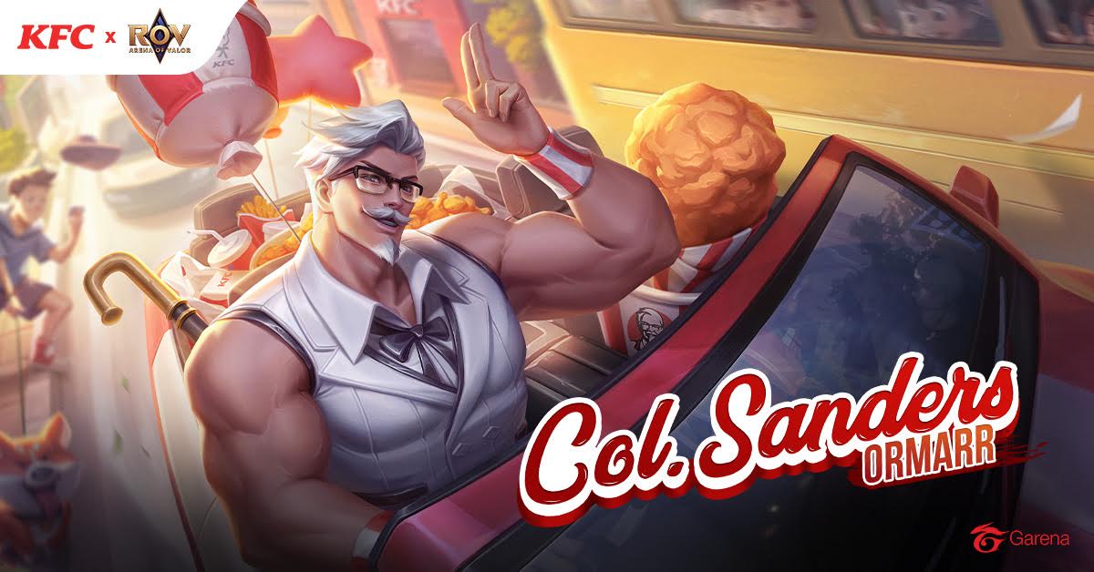KFC แบรนด์ไก่ทอดระดับโลกขวัญใจวัยรุ่นไทย จับมือกับ RoV (Arena of Valor) สุดยอดเกม MOBA (Multiplayer Online Battle Arena) ที่ครองใจเกมเมอร์และแฟนอีสปอร์ตทั้งในประเทศไทยและทั่วโลก เพื่อเปิดตัวแคมเปญ ‘KFC x RoV ชุดขุมทรัพย์เดอะบอกซ์’ พร้อม สกิน ‘Col. Sanders Ormarr’ สกินสุดพิเศษของตัวละคร Ormarr บนเกม RoV โดยนับเป็นครั้งแรกในประวัติศาสตร์ที่ผู้พันแซนเดอร์ส จาก KFC จะเข้าไปโลดแล่นในโลกของเกม RoV ทั้งนี้เพื่อร่วมกันสร้างประสบการณ์แปลกใหม่ให้แก่เหล่าเกมเมอร์ชาวไทย ตลอดจนผู้บริโภคเจนเนอเรชั่นใหม่ที่มีความสนใจในเกมและอีสปอร์ตมากขึ้นในปัจจุบัน