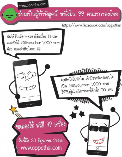 สนใจร่วมกิจกรรมและอ่านรายละเอียดการร่วมกิจกรรม ได้ที่ www.oppothai.com หรือ www.facebook.com/oppothai