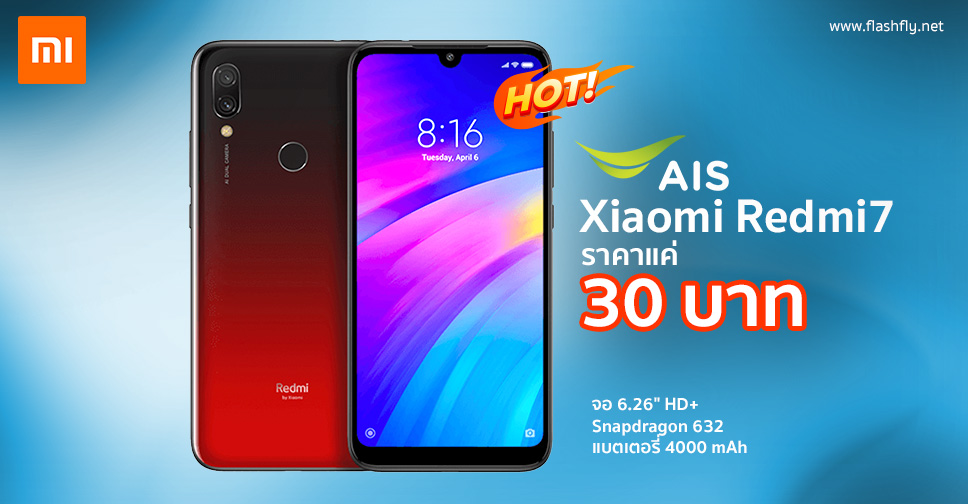 อยากได้สมาร์ทโฟนเครื่องใหม่สักเครื่อง แต่ในสภาวะเศรษฐกิจแบบนี้ อยากให้มีโปรโมชั่นสมาร์ทโฟนราคาเครื่องถูกๆแบบไม่หนึ่งร้อยบาทจะเป็นไปได้ไหม คำตอบคือมี และมีราคาเครื่องแค่ 30 บาทเท่านั้น!! กับโปรโมชั่นสมาร์ทโฟน Xiaomi Redmi 7 จาก AIS ส่วนจะมีรายละเอียดและเงื่อนไขอย่างไรบ้างนั้น มาติดตามกันเลยดีกว่า