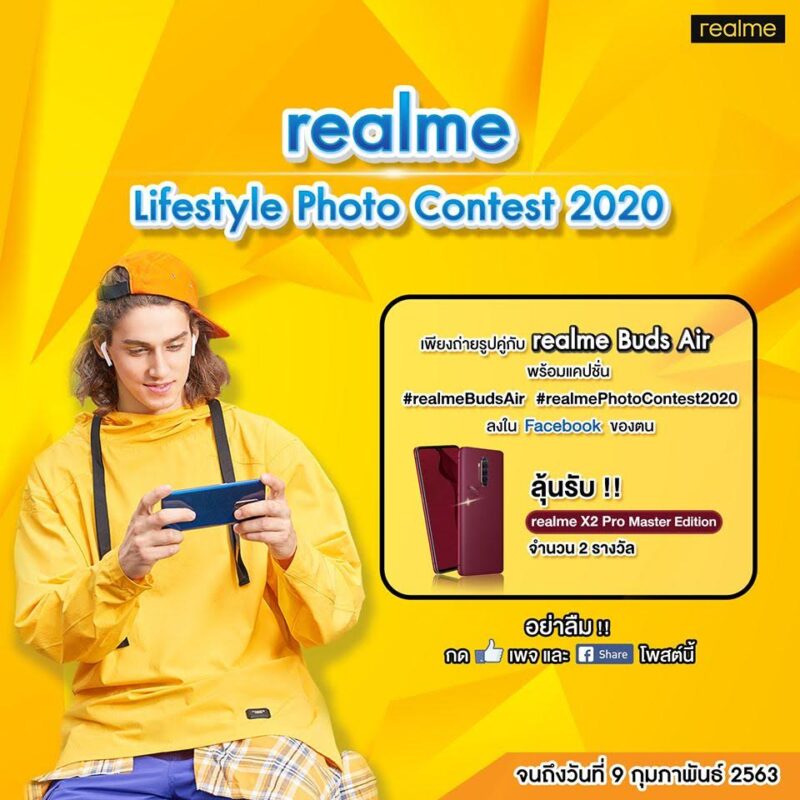 realme แบรนด์สมาร์ทโฟนเพื่อคนรุ่นใหม่จัดกิจกรรมสุดพิเศษเอาใจสาวก realme กับ realme Lifestyle Photo Contest 2020 กิจกรรมประกวดภาพถ่ายคู่กับหูฟัง “ ตัวจริงการเชื่อต่อแบบไร้สาย realme Buds Air ” ในคอนเซปต์ Lifestyle สะท้อนความเป็นตัวคุณผ่านหูฟังสุดพิเศษ realme Buds Air สำหรับภาพที่โดนใจคณะกรรมการมากที่สุดรับฟรี สมาร์ทโฟนพลังเรือธงสุดพิเศษ realme X2 Pro Master Edition สี Red Brick มูลค่า 19,999 บาท สามารถร่วมกิจกรรมได้แล้วตั้งแต่วันนี้ ถึงวันที่ 9 กุมภาพันธ์ 2563