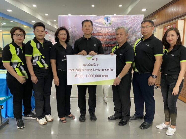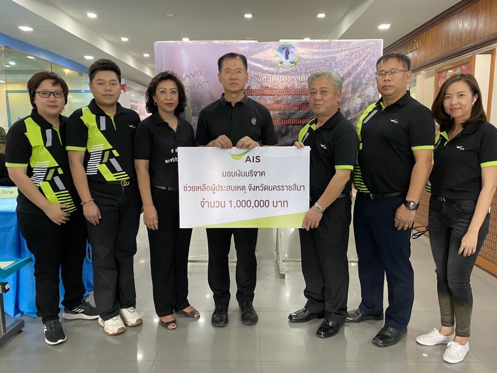 AIS โดย นายอุดมศักดิ์ โสมคำ หัวหน้าส่วนงานปฏิบัติการภูมิภาค – ภาคตะวันออกเฉียงเหนือ มอบเงินบริจาค จำนวน 1,000,000 บาท ให้กับ นายวิเชียร จันทรโณทัย ผู้ว่าราชการจังหวัดนครราชสีมา เพื่อช่วยเหลือและเป็นกำลังใจให้กับครอบครัวผู้เสียชีวิต ผู้บาดเจ็บ และผู้ได้รับผลกระทบจากเหตุการณ์ความรุนแรงในพื้นที่จังหวัดนครราชสีมา โดยมี นางณัฏฐินีภรณ์ จันทรโณทัย นายกเหล่ากาชาดจังหวัดนครราชสีมา ร่วมด้วย