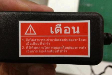 ที่ปรึกษาคณะกก.ตรวจรับแท็บเล็ตป.1ยันแจ้งจีนเปลี่ยนคำเตือนบนอแดปเตอร์ชาร์จไฟแล้ว หลังแปลไม่รู้เรื่อง น.อ.สุรพล นะวะมวัฒน์ ที่ปรึกษา รมว.เทคโนโลยีสารสนเทศและการสื่อสาร (ไอซีที) ในฐานะคณะกรรมการจัดทำทีโออาร์แท็บเล็ต ป.1 และที่ปรึกษาคณะกรรมการตรวจรับแท็บเล็ต กล่าวว่า กรณีที่มีผู้นำภาพคำเตือนบนอแดปเตอร์ชาร์จไฟของเครื่องคอมพิวเตอร์แท็บเล็ต ในโครงการแท็บเล็ตป.1 มาโพสต์บนเครือข่ายอินเตอร์เน็ตพร้อมระบุว่ามีการแปล ความที่ไม่สื่อถึงความหมายนั้น ยอมรับว่าเป็นเรื่องจริง