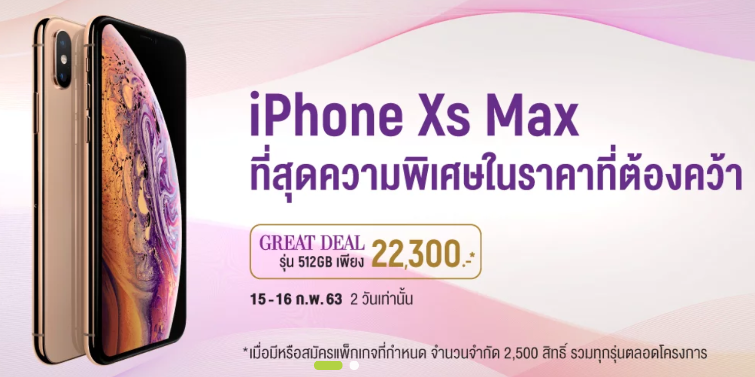ลูกค้าเอไอเอส เซเรเนด รับความพิเศษ iPhone Xs Max ในราคาที่ต้องคว้า กับ Serenade Great Deal เริ่มต้น 22,300 บาท พร้อมสมาร์ทโฟนดีลพิเศษ เริ่มต้นเพียง 100 พอยท์ แลกซื้อมือถือสุดพิเศษ 2,499 บาท