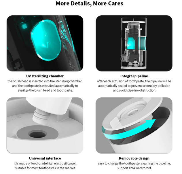 ไม่ใช่เพียงแค่จ่ายยาสีฟันอัตโนมัติให้เท่านั้น Smartknow Automatic Sensor Toothpaste Machine ยังติดตั้งเทคโนโลยี UVC ช่วยฆ่าเชื้อไวรัสและแบคทีเรียให้อัตโนมัติ เมื่อยื่นหัวแปรงเข้าไป โดยใช้รังสีอัลตราไวโอเลตที่สามารถกำจัดเชื้อไวรัสได้ถึงระดับ DNA และ RNA