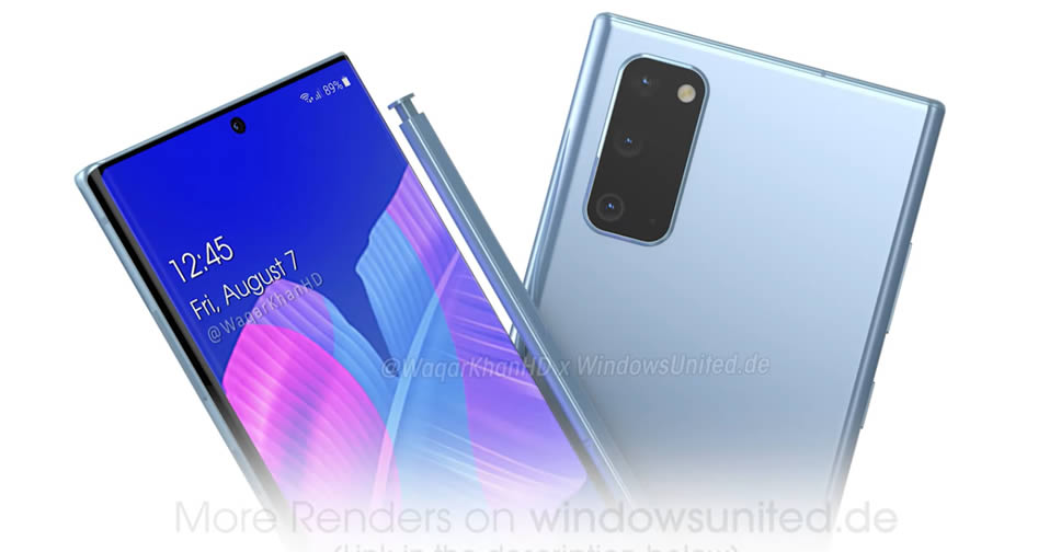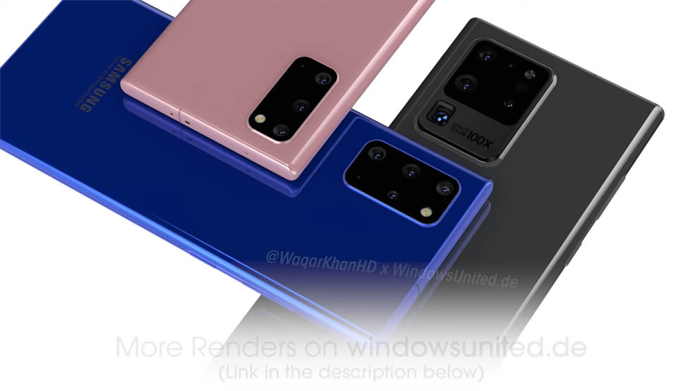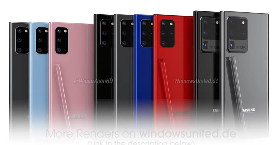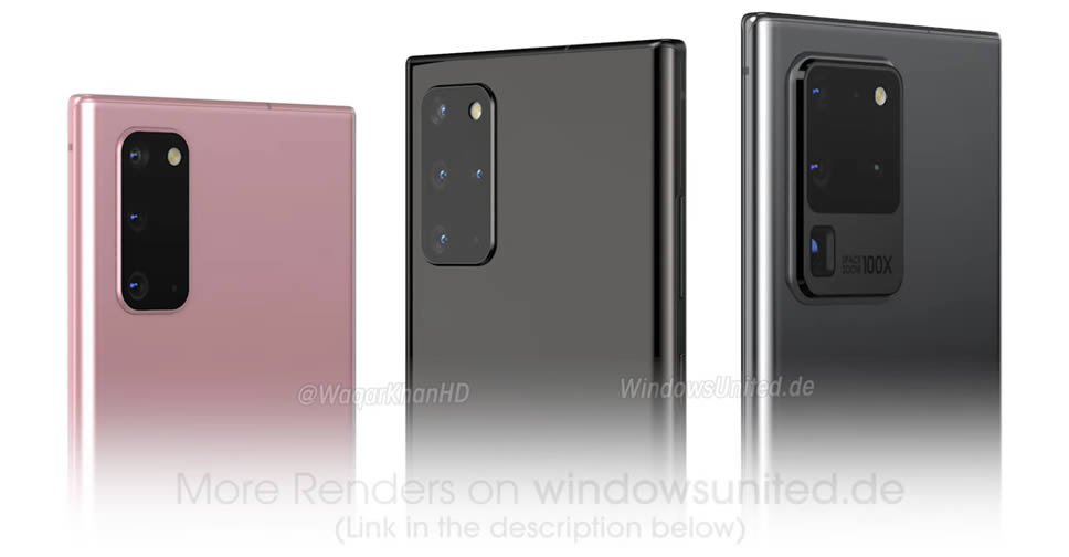 ในปีที่แล้ว Galaxy Note 10 series มีให้เลือก 2 รุ่น (ถ้าไม่นับเวอร์ชั่น 5G) คือ Galaxy Note 10 และ Galaxy Note 10+ แต่ในปีนี้ Waqar Khan เชื่อว่า Galaxy Note 20 series จะมีด้วยกัน 3 รุ่น คือ Galaxy Note 20, Galaxy Note 20+ และ Galaxy Note 20 Ultra ซึ่งเป็นรูปแบบเดียวกับ Galaxy S20 series และยังมีดีไซน์ที่คล้ายกันด้วย เพียงแต่เพิ่มช่องเสียบปากกา S Pen ไว้ที่ด้านล่าง