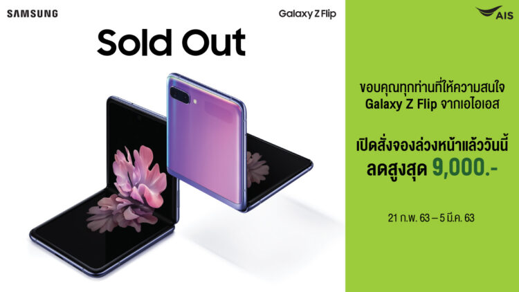 ซัมซุง การันตีกระแสความฮอตของสมาร์ทโฟนพับได้อีกครั้ง หลังเปิดจำหน่ายรอบพิเศษเพียง 1 วันก็ขายหมดอย่างรวดเร็ว สำหรับ Galaxy Z Flip สมาร์ทโฟนพับได้โฉมใหม่ล่าสุดจากซัมซุง ด้วยดีไซน์อันโฉบเฉี่ยวและทันสมัยบนนวัตกรรมจอกระจบพับได้เป็นครั้งแรก ทำให้สมาร์ทโฟนเครื่องนี้กลายเป็นที่จับตามองของผู้ที่ชื่นชอบในเทคโนโลยีและแฟชั่น สะท้อนกระแสตอบรับที่ดีเยี่ยมจากผู้บริโภคชาวไทย โดยซัมซุงเตรียมวางขาย Galaxy Z Flip อย่างเป็นทางการในวันที่ 6 มีนาคม 2563 เป็นต้นไป