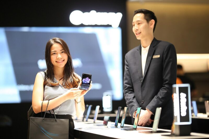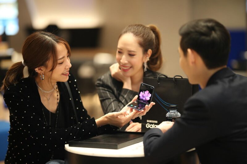 จากการพูดคุยกับลูกค้ากลุ่มแรก ต่างชื่นชอบในดีไซน์ที่โดดเด่นของ Galaxy Z Flip สร้างความประทับใจตั้งแต่ครั้งแรกที่สัมผัส อีกทั้งสมาร์ทโฟนพับได้ยังมอบประสบการณ์การใช้งานที่แปลกใหม่ และไม่พลาดที่จะรีบเป็นเจ้าของเป็นกลุ่มแรกในวันนี้