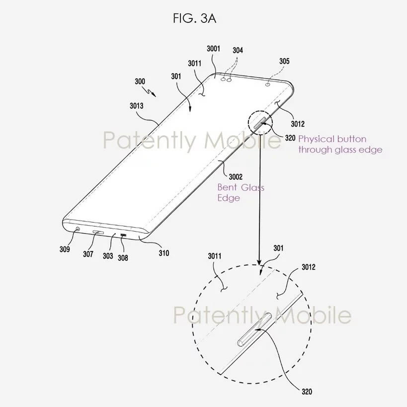 สิทธิบัตรล่าสุดของ Samsung แสดงให้เห็นการออกแบบจอแสดงผลแบบ Waterfall Display หรือมีขอบจอโค้งมากเป็นพิเศษ คล้ายกับที่พบใน Huawei Mate 30 Pro และ Vivo NEX 3 อย่างไรก็ตาม ในสิทธิบัตรของ Samsung ระบุว่าปุ่มกดด้านข้างยังคงเป็นแบบ Physical และใช้วิธีเจาะหลุ่มบนแผ่นกระจก