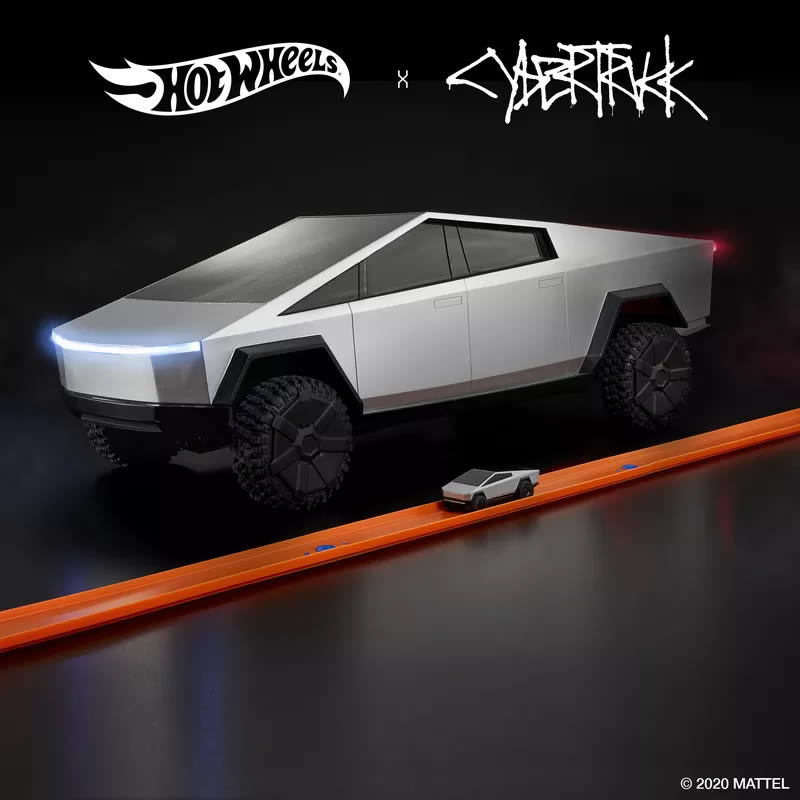 Hot Wheels เปิดตัวรถของเล่นที่จำลองดีไซน์มาจากรถกระบะพลังงานไฟฟ้า Tesla Cybertruck โดยมีให้เลือก 2 รุ่น ตามขนาดที่จำลองมาจากต้นฉบับ 1:64 และ 1:10 เตรียมวางจำหน่ายในเดือนธันวาคม 2020 เหมาะสำหรับซื้อเป็นของขวัญช่วงคริสต์มาสหรือปีใหม่