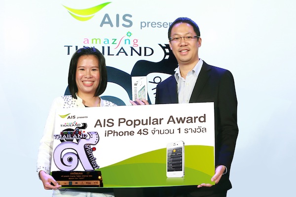 เอไอเอส โดย นายทิฐินันท์ โชตินันทน์ ผู้จัดการฝ่ายการตลาด เอไอเอส มอบรางวัล iPhone 4S แก่ นางสาวฆารวี โชคคุณะวัฒนา ผู้กำกับภาพยนตร์สั้นเรื่อง “Smiling Heart” จากโครงการประกวดหนังสั้น “AIS presents Amazing Thailand 9 Film Fest” ซึ่งได้รับรางวัล Popular Vote จากลูกค้าเอไอเอส ที่ร่วมกิจกรรมโหวตหนังสั้นโดนใจบนมือถือ โดยภาพยนตร์เรื่องนี้รวมถึงทุกเรื่องที่ได้รับรางวัลจะได้รับการสนับสนุนจากเอไอเอสในการเผยแพร่บนมือถือผ่าน wap.mobilelife.co.th/9filmfest เพื่อเป็นอีกหนึ่งช่องทางในการสนับสนุนวงการภาพยนตร์สั้นของไทย