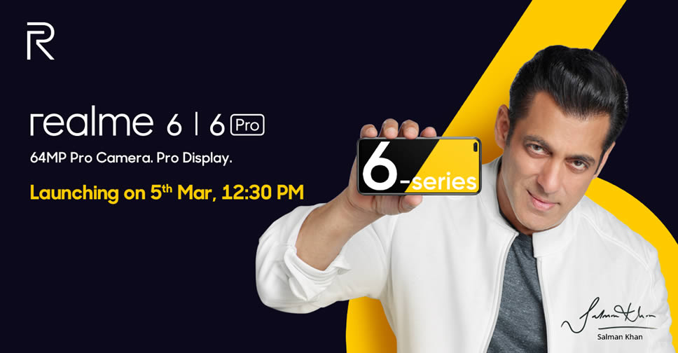 realme ปล่อยรูปภาพโปสเตอร์ออกมาโปรโมทสมาร์ทโฟนรุ่นใหม่ realme 6 และ realme 6 Pro โดยยืนยันว่าจะเปิดตัวในประเทศอินเดีย วันที่ 5 มีนาคมนี้ โดยมี Salman Khan ซูเปอร์สตาร์แห่งวงการบอลลวูด มาเป็นแบรนด์แอมบาสเดอร์