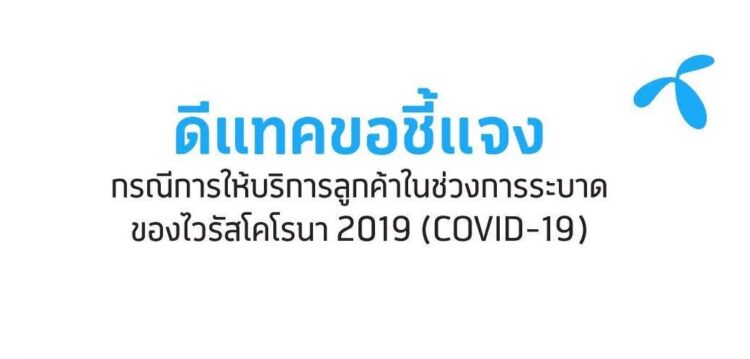 ทั้งนี้ ดีแทคได้กำหนดมาตรการป้องกันการระบาดของโรคติดเชื้อไวรัส COVID -19 ฉบับที่ 7 เมื่อวันที่ 26 กุมภาพันธ์ที่ผ่านมา ตามลิงค์นี้ https://dtacblog.co/story-th/dtac-regulations-pertaining-to-coronavirus-covid-19/