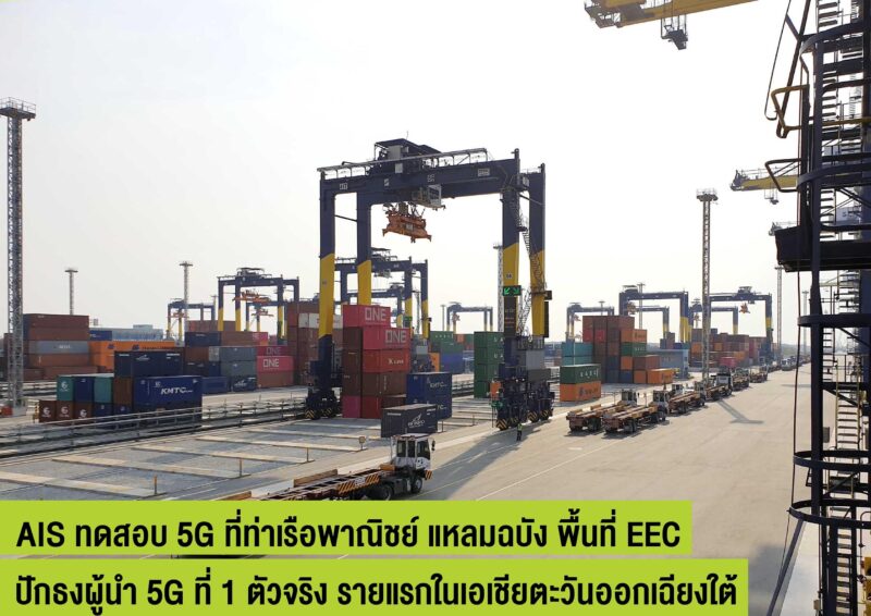 เอไอเอส ผู้นำอันดับ 1 ด้านนวัตกรรมเครือข่ายและเทคโนโลยีของประเทศ ทดสอบการนำเทคโนโลยี 5G มาประยุกต์ใช้ในกิจการท่าเทียบเรือขนส่งสินค้า เพื่อให้ผู้ปฏิบัติงานสามารถควบคุมเครนยกตู้สินค้าได้จากระยะไกล ผ่านโครงข่าย 5G ณ ท่าเทียบเรือฮัทชิสัน พอร์ท ประเทศไทย ท่าเรือแหลมฉบัง อ.ศรีราชา จ.ชลบุรี ได้เป็นรายแรกของไทยและเอเชียตะวันออกเฉียงใต้ ภายใต้การสนับสนุนของ กสทช. โดยจะมีบทบาทสำคัญในการช่วยบริหารจัดการขนส่งสินค้าในท่าเรือพาณิชย์ได้อย่างมีประสิทธิภาพมากยิ่งขึ้น เป็นหนึ่งในโครงการพัฒนาโครงสร้างพื้นฐานทางดิจิทัล และเทคโนโลยี 5G นี้ มีส่วนร่วมสนับสนุนโครงการระเบียงเขตเศรษฐกิจพิเศษภาคตะวันออก หรือ EEC ในการผลักดันให้ท่าเรือแหลมฉบังเป็นเกตเวย์ของประเทศไทย และเป็นศูนย์กลางด้าน โลจิสติกส์ สำหรับการค้าการลงทุนของกลุ่มประเทศอาเซียนในอนาคต