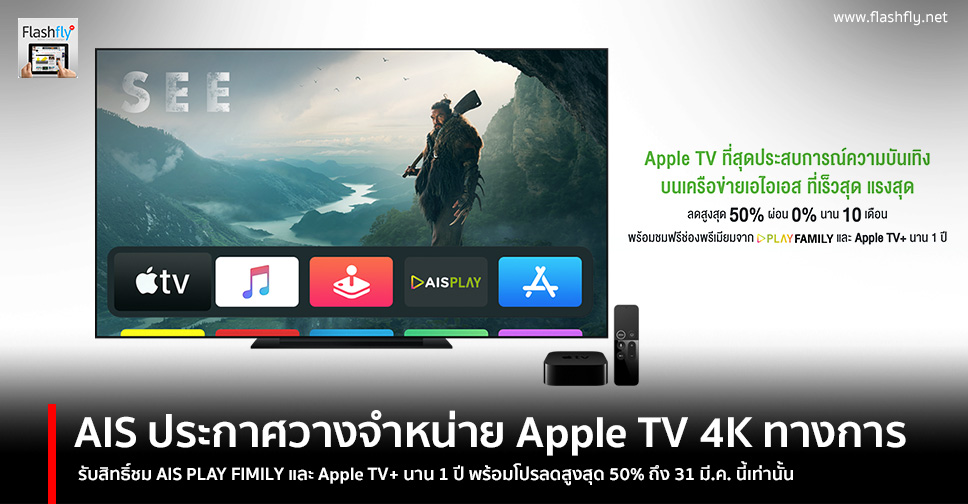 ค่ายเดียวในไทย AIS ประกาศวางจำหน่าย Apple TV 4K ทางการ รับสิทธิ์ชม AIS PLAY FIMILY และ Apple TV+ นาน 1 ปี พร้อมโปรลดสูงสุด 50% ถึง 31 มี.ค. นี้เท่านั้น