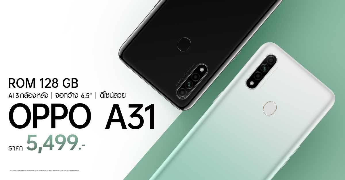 สุดคุ้ม!! OPPO A31 ความจุ 128GB จอ 6.5 นิ้วแบต 4,230 mAh ราคาเพียง 5,999 บาท วางจำหน่ายในไทยแล้ววันนี้
