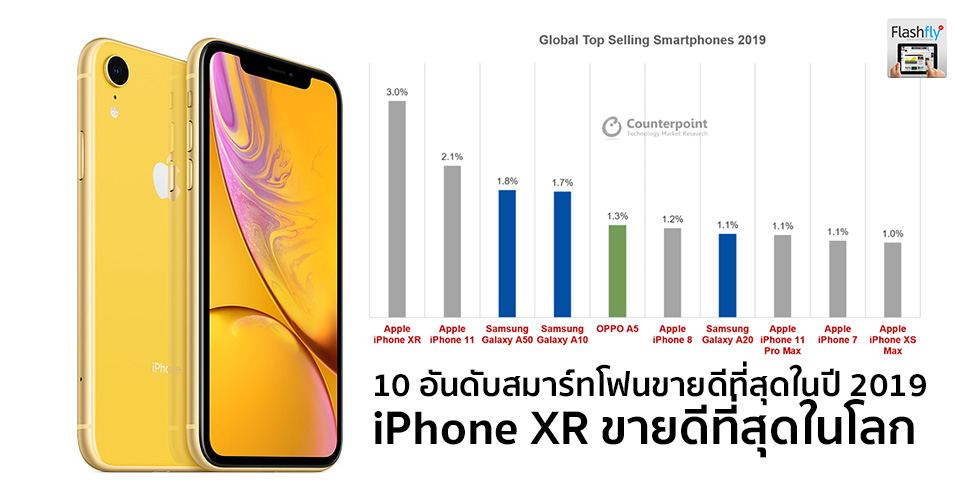 Counterpoint Research รายงาน 10 อันดับสมาร์ทโฟนขายดีที่สุดในปี 2019 พบว่า iPhone ยังครองความนิยมทั่วโลก ขายดีถึง 6 รุ่น โดย iPhone XR ที่เปิดตัวในปี 2018 ขายดีที่สุด ตามมาด้วย iPhone 11 ที่เปิดตัวในเดือนกันยายน 2019 ขายดีเป็นอันดับที่ 2 ถึงแม้จะมีเวลาอยู่ในตลาดไม่ถึง 4 เดือน