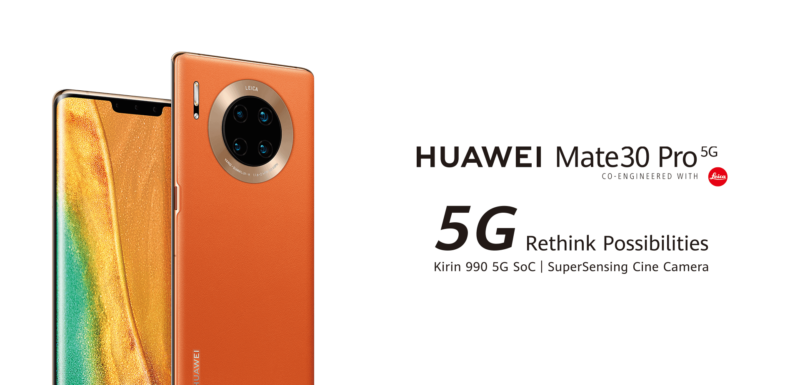 สำหรับ Huawei Mate 30 Pro 5G ที่วางจำหน่ายในไทย จะมาพร้อมกับ ROM 256GB/RAM 8GB รองรับ 5G บนคลื่น 700 MHz และ 2600 MHz นอกจากนี้ Huawei Mate 30 Pro 5G ยังมาพร้อม ชิปเซต Kirin 990 5G SoC หน้าจอแสดงผล OLED ขนาด 6.53 นิ้ว ความละเอียด Full HD+ กล้องหน้า ให้ความละเอียด 32 ล้านพิกเซล และกล้องหลัง 4 ตัว โดยกล้องหลัก ความละเอียด 40 ล้านพิกเซล เลนส์ Ultra-Wide ความละเอียด 40 ล้านพิกเซล เลนส์ Telephoto 8 ล้านพิกเซล และ 3D ToF แบตเตอรี่ 4,500 mAh