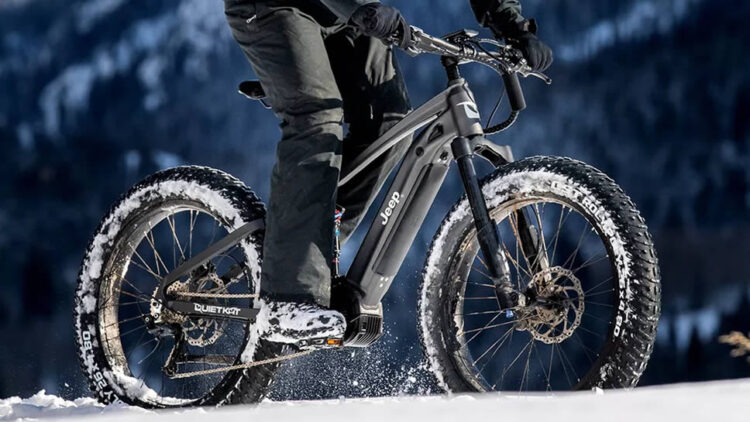 รถจักรยานไฟฟ้าของ Jeep ร่วมกันออกแบบกับบริษัท QuietKat ผู้ผลิตจักรยานเสือภูเขาไฟฟ้ที่มีฐานอยู่ในโคโลราโด มาพร้อมกับมอเตอร์ 750W ล้อแฟตขนาด 4.8 นิ้ว ระบบเกียร์ 10 สปิด และมีระบบกันสะเทือนระดับสูง สามารถทำความเร็วได้สูงสุด 20 ไมล์ต่อชั่วโมง