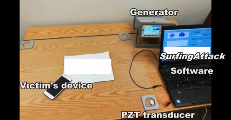 นักวิจัยเรียกการแฮกสมาร์ทโฟนด้วยคลื่นอัลตร้าโซนิคว่า Surfing Attack โดยสมาร์ทโฟนที่ถูกแฮค ต้องวางอยู่บนโต๊ะจึงสามารถแฮกได้สำเร็จ วิธีการทำงานก็คือ แฮกเกอร์จะใช้ไมโครโฟนแนบติดไว้ที่ใต้โต๊ะ เพื่อแปลงคำสั่งจากซอฟต์แวร์ Surfing Attack เป็นคลื่นอัลตร้าโซนิค แล้วส่งไปยังสมาร์ทโฟนของเป้าหมาย เพื่อให้ทำตามคำสั่งที่ต้องการ