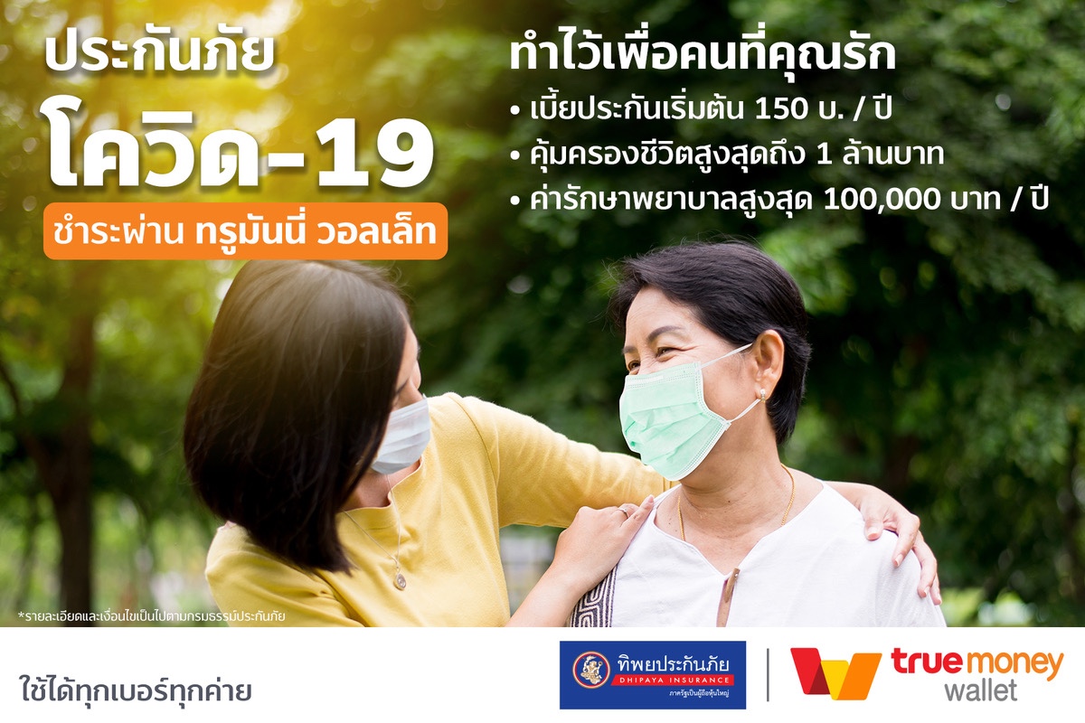 ทรูมันนี่ ผู้นำด้านบริการอิเล็กทรอนิกส์เพย์เมนท์ชั้นนำในภูมิภาคเอเชียตะวันออกเฉียงใต้ จับมือ บริษัท ทิพยประกันภัย จำกัด (มหาชน) เปิดให้บริการชำระเบี้ยเพื่อซื้อประกันภัยไวรัสโคโรน่า (COVID-19) บนอีวอลเล็ทรายแรกในประเทศไทย ผ่านแอป TrueMoney Wallet ได้ตลอด 24 ชั่วโมง ช่วยเพิ่มความอุ่นใจให้กับคุณและคนที่คุณรักนอกเหนือจากการป้องกันสุขภาพส่วนตัว โดยเบี้ยเริ่มต้นเพียง 150 บาท1 ค่ารักษาพยาบาลจากการติดเชื้อไวรัสโคโรนาตามจริงสูงสุด 1แสนบาทต่อปี และค่าชดเชยกรณีเจ็บป่วยด้วยภาวะโคม่าหรือโรคร้ายแรงที่มีสาเหตุมาจากไวรัสโคโรน่า (COVID-19)2 สูงสุดถึง 1 ล้านบาท