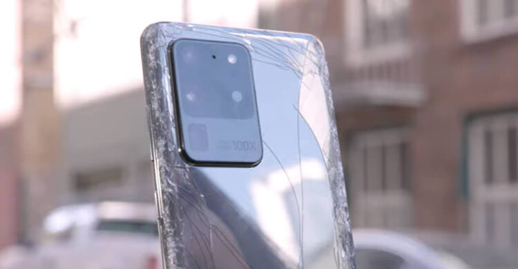 ทีมงานของ CNET ได้ปล่อย Galaxy S20 Ultra จากระดับเอว ให้ตกลงสู่พื้นคอนกรีต และเราก็ได้เห็นความเสียหาอย่างชัดเจนทันทีจากการทดสอบในครั้งแรก โดยมีรอยแตกร้าวตามขอบด้านหลังและชัดเจนมากที่สุดตรงส่วนมุมบนที่สัมผัสกับพื้นเป็นจุดแรก
