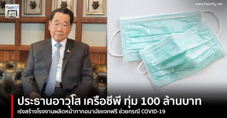 ในการนี้เครือเจริญโภคภัณฑ์ยึดประโยชน์เพื่อประเทศชาติ เพื่อประชาชน โดยเฉพาะวิกฤตโรคระบาดครั้งนี้เกิดในประเทศไทย ถือเป็นหน้าที่ของเครือซีพีในการทำเพื่อคนไทย จึงได้ตัดสินใจนำเงินจำนวนประมาณ 100 ล้านบาทเร่งสร้างโรงงานผลิตหน้ากากอนามัยเพื่อแจกจ่ายฟรีแก่บุคลากรทางการแพทย์ในโรงพยาบาลที่มีความจำเป็นและประชาชนทั่วไปที่ขาดโอกาสในการเข้าถึง ในช่วงเวลาวิกฤตที่คนไทยขาดแคลนหน้ากากอนามัย โดยจะใช้ศักยภาพของเครือข่ายการลงทุนที่มีอยู่ทั่วโลก จัดหาเครื่องจักร และวัตถุดิบที่ได้มาตรฐานสุขอนามัย สามารถใช้ในการป้องกันเชื้อโรคโดยเฉพาะเชื้อไวรัสโคโรนาสายพันธุ์ใหม่ หรือโควิด-19 ทั้งนี้โดยโรงงานดังกล่าวจะสร้างเสร็จภายใน 5 อาทิตย์ จะมีกำลังการผลิตประมาณเดือนละ 3 ล้านชิ้น เพื่อนำไปแจกจ่ายให้แก่บุคลากรทางการแพทย์ในโรงพยาบาลมีความจำเป็น และประชาชนที่ยังขาดโอกาสเข้าถึงต่อไป